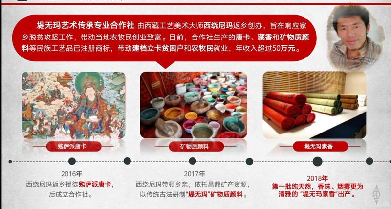 负责人:西绕尼玛 作品:手工艺制作新式藏香 公司:贡觉县堤无玛艺术传承专业合作社